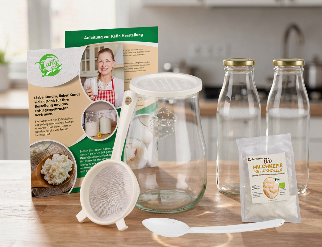 Kefir Starter Set – Milchkefir selber machen mit Bio-Kefirknollen + Zubehör